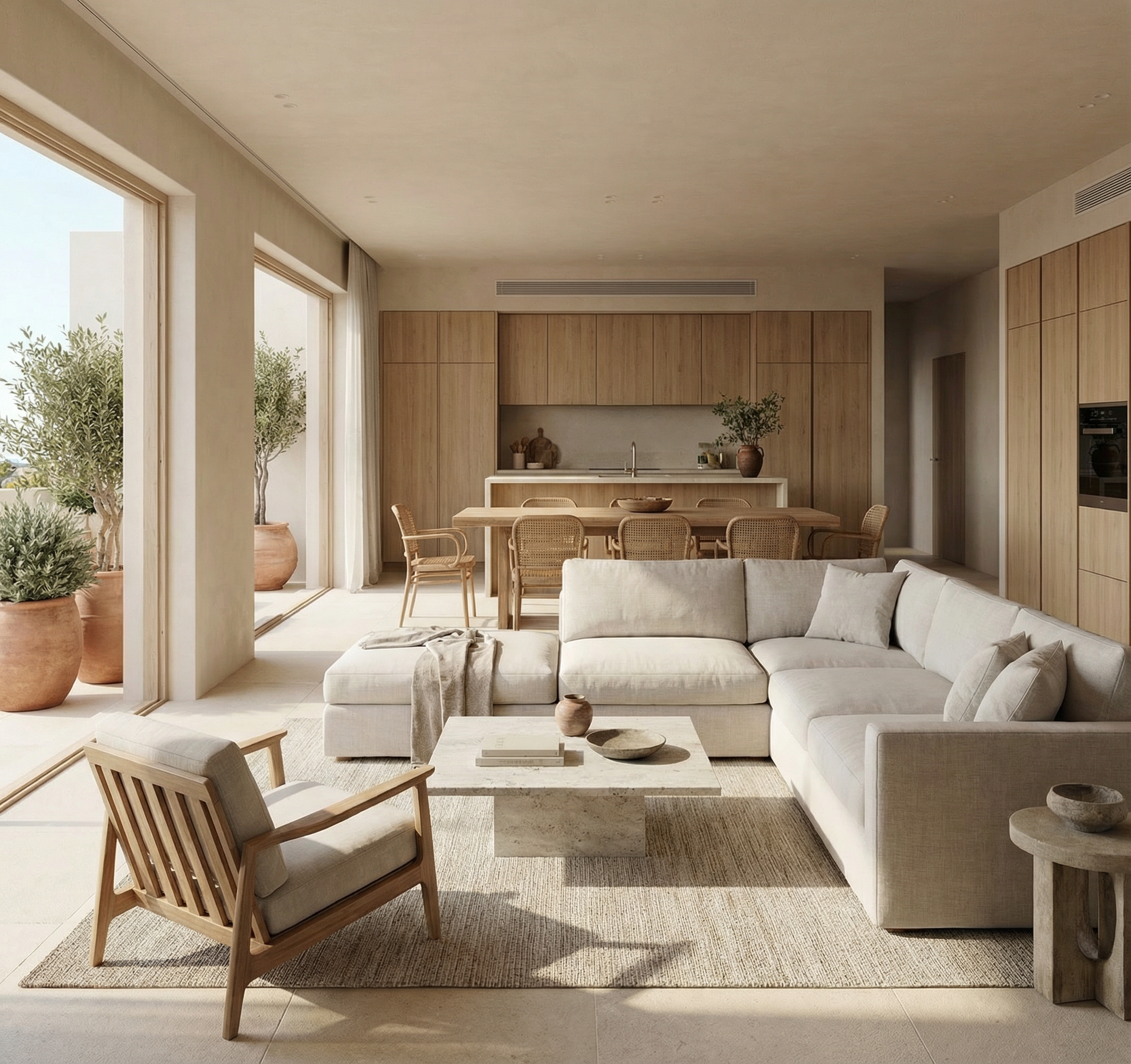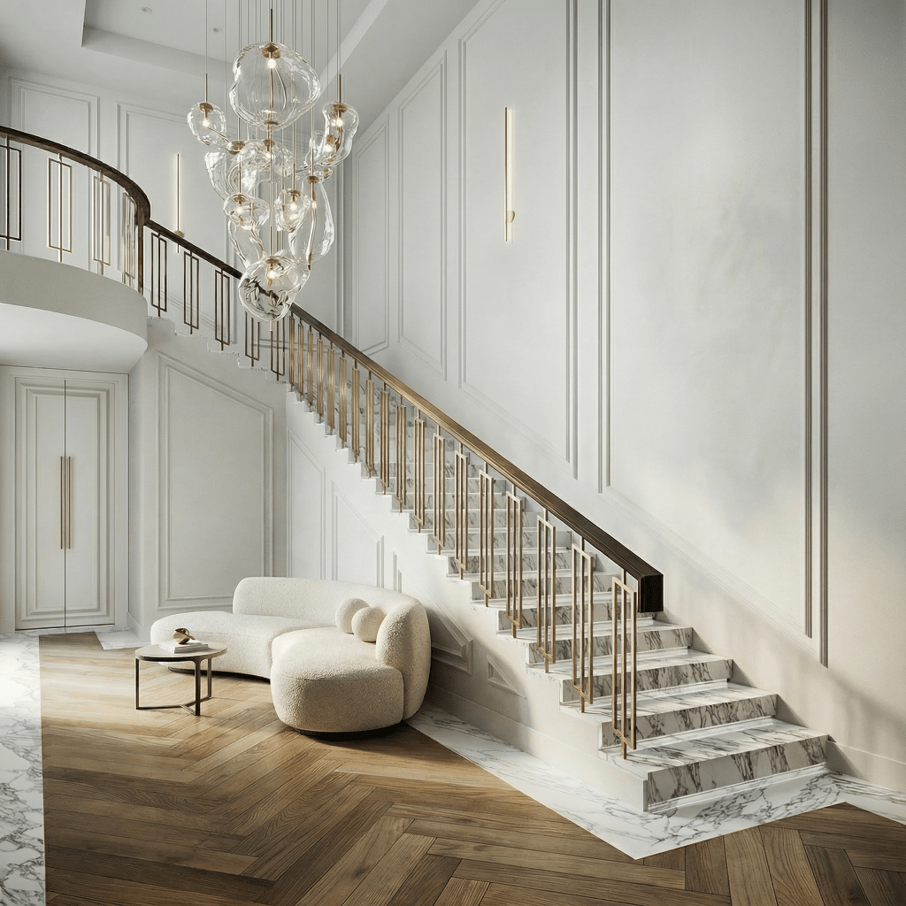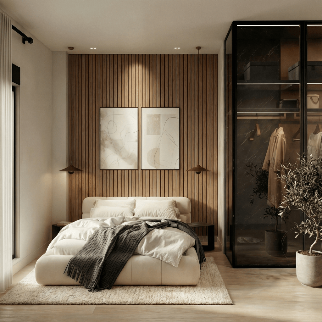 Interior atmospheres crafted through materiality, proportion, and light. These spaces are designed to feel timeless and refined, creating emotional comfort while expressing clarity, balance, and architectural intention.