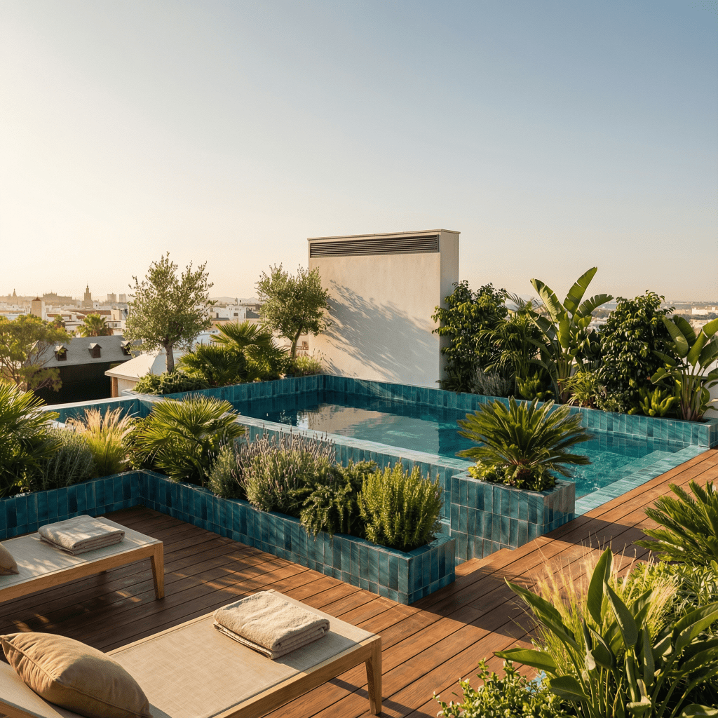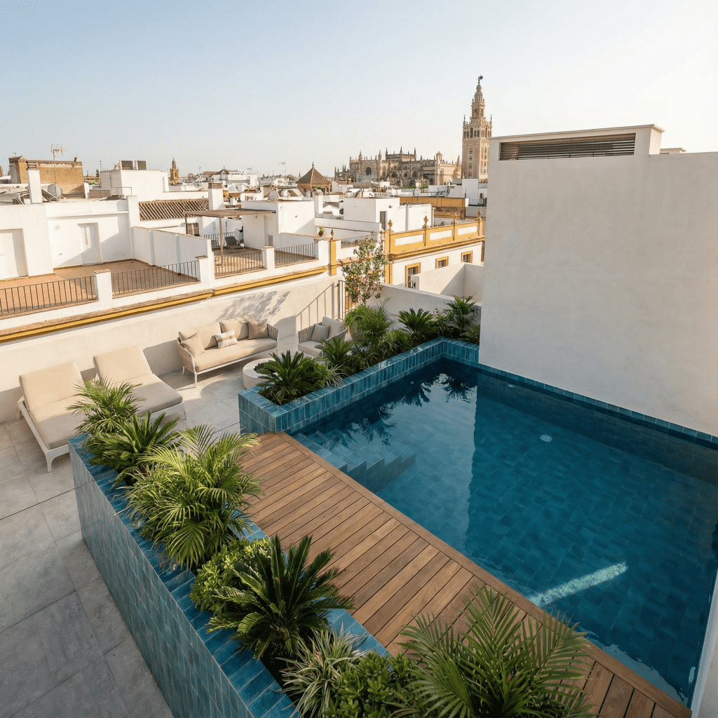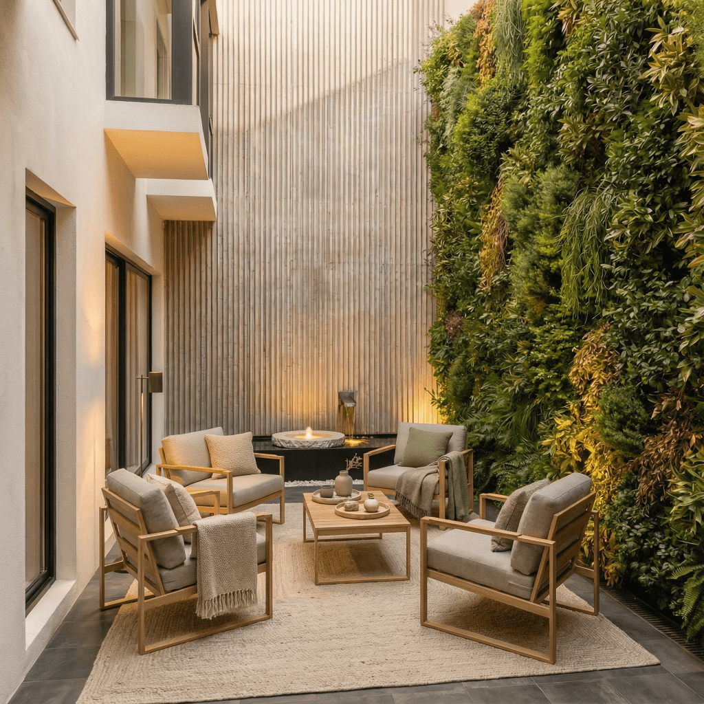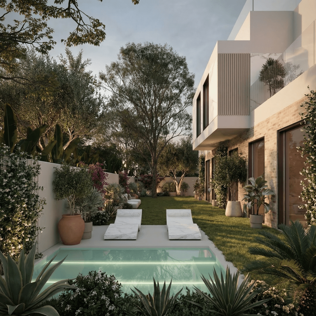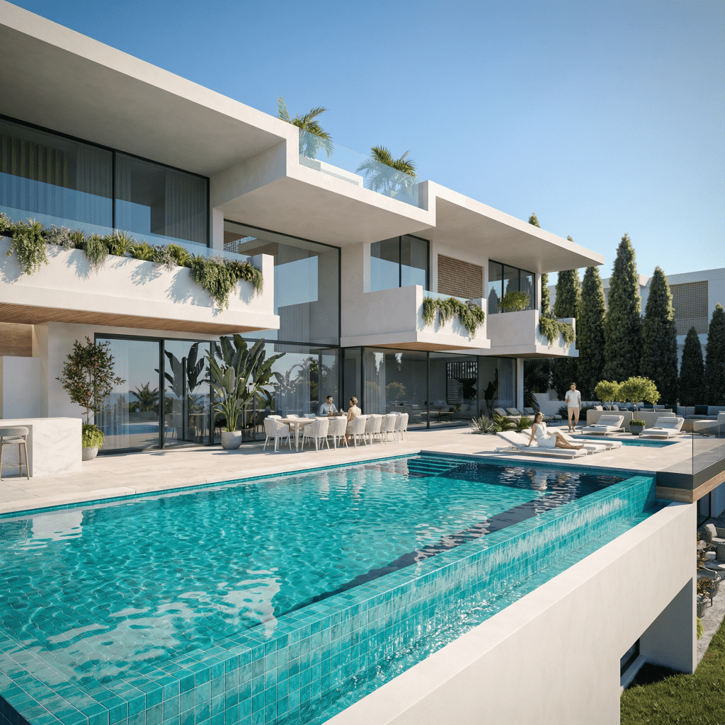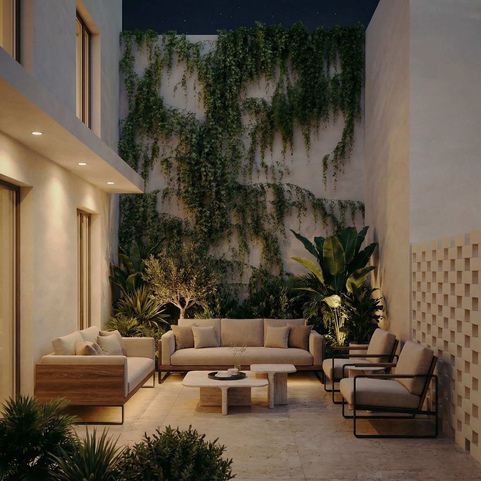 Outdoor spaces imagined as elevated extensions of architecture. Terraces become places for pause, openness, and contemplation, where light, views, and material textures define a calm and sophisticated outdoor experience.